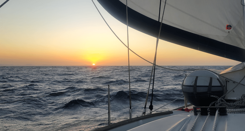 Around 5AM on Thursday the 29th when Jeremy tried to start the engine, it would not start. The solenoid would not even make a clicking sound. Jeremy tried using a screwdriver to jump the solenoid which bypasses the ignition switch to close the circuit and should engage the starter. In that case, it would spin briefly, but wouldn’t engage the gears to start the engine. We confirmed that the start battery had power, and that there was power to the starter, and that it was grounded properly. We were left with the conclusion that a new starter was needed. The house bank was already low down to 12.3 volts so we turn off all loads except the navigation lights and the automatic bilge pump. There were not any other ships around, but the compass light was also tied to the nav lights and that was needed since we turned off auto pilot. We could simply steer a compass course so the chart plotter was turned off and we also had Navionics on phones to use for occasional checks for navigation. After doing a lot of hand steering, I understand why people advocate for wind vane steering for passage making as an alternative to the autopilot. Hand steering with plenty of wind and swell takes constant attention.