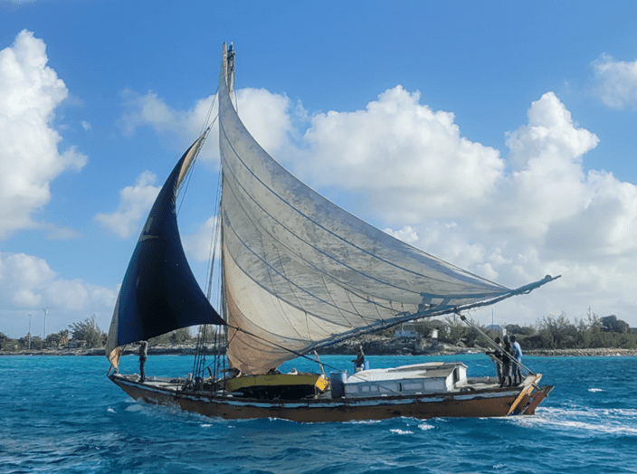 We arrived at the anchorage outside Mathewstown on Great Inagua around 10:30pm on Thursday, the 29th and anchored under sail. It was helpful to have 3 of us onboard for this maneuver since Jeremy was at the helm, I furled the headsail and Brian lowered the anchor manually. Fortunately, the anchor held. Unfortunately, it was a very rolly anchorage since the swell wrapped around the point just south of us and hit us on the beam while the wind had us pointed east. We waited until 8am to try to call the marina and hail someone on channel 16 on the radio but there was no answer. While we waited to hear from everybody, we saw a Haitian sailboat cruise by. Apparently they were delivering concrete blocks. This traditional boat had actual trees for spars and a vast amount of sail area for that size boat. We watched in amazement as they tacked up into port. The boat was so heavy that they could simply drop their sails and rely on momentum to take them in after they dropped their sails following their last tack. This was not an option for our boat since it was very light with high freeboard and a lot of windage so we would have just gotten blown right back.
