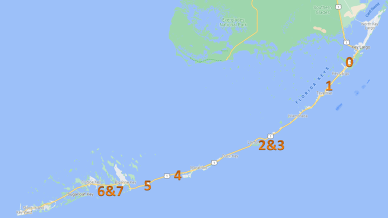 Corrie and I went on a sailing trip that started in Key Largo and finished in Summerland Key, which is in the lower keys, not far from Key West. We went with Captain Suky, who was recommended to us by our friends Scott and Michelle, who have the slip next to us at Lake Manawa. Suky lives on her Morgan Out Island 41 center cockpit sloop full time so it was a great way to learn more about the live aboard lifestyle along with sailing. We anchored every night and ate (great food!) on the boat. Suky has a wealth of knowledge to share, has an easy going teaching style, and we learned a lot. We enjoyed snorkeling in calm conditions offshore at Alligator Reef and saw a variety of wildlife on the trip including dolphins, small Nurse sharks, manatees, and a sea turtle. After the sailing trip, we spent a couple of days in Key West and then drove back north to spend a couple of days in the Everglades before heading home. There’s a more detailed log of the trip after the photos below.