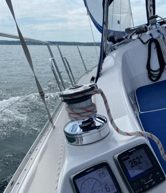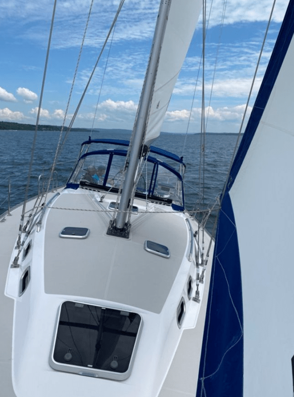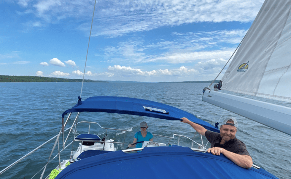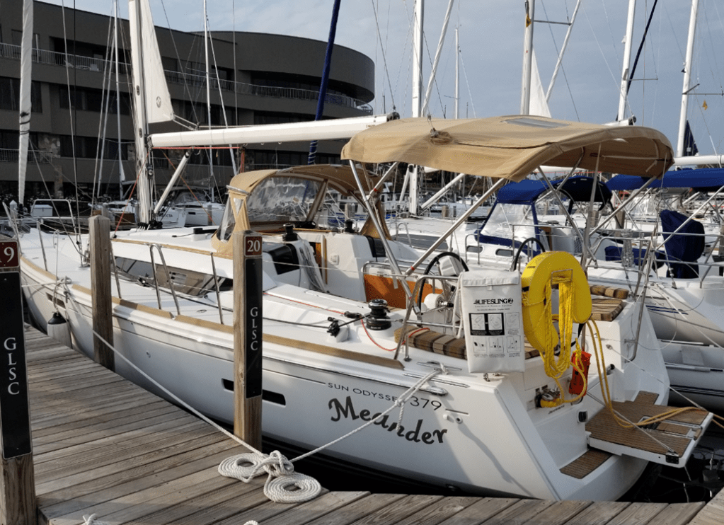 We chartered a Jeanneau 379 and for this trip we stayed within the bay.