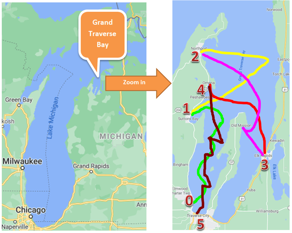 We took two sailing trips in Michigan. In fall of 2020, Corrie and I went on our first bareboat charter with just the two of us. In summer of 2021 we went back again but this time with our friends Jed and Teresa. We chartered through Great Lakes Sailing Co. and they were great to work with. You can see more detailed writeups in the PDFs below the photos.