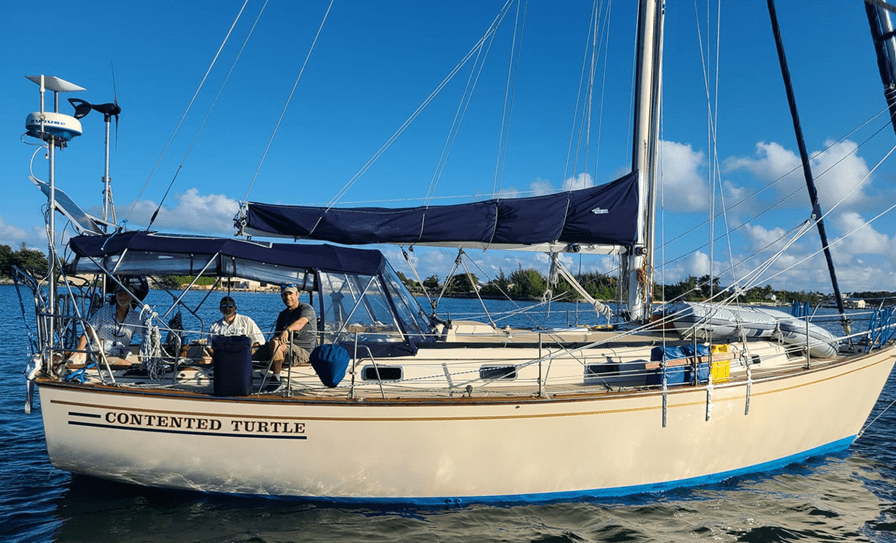 This trip was with my friends Jesse Broome and Carl Graves. It was on Jesse’s Island Packet 38, named Contented Turtle. Jesse keeps Contented Turtle at the marina/boat yard next to ours, and I met him there when Zephyr was getting worked on early this spring. It turns out that Jesse and I have a lot in common in addition to owning 38’ Island Packets. Carl has is Island Packet 380 (same model boat as Zephyr) a couple of slips down in the same marina as us. He’s been on all kinds of hiking, motorcycling, and flying adventures so sailing is his newest type of adventure.