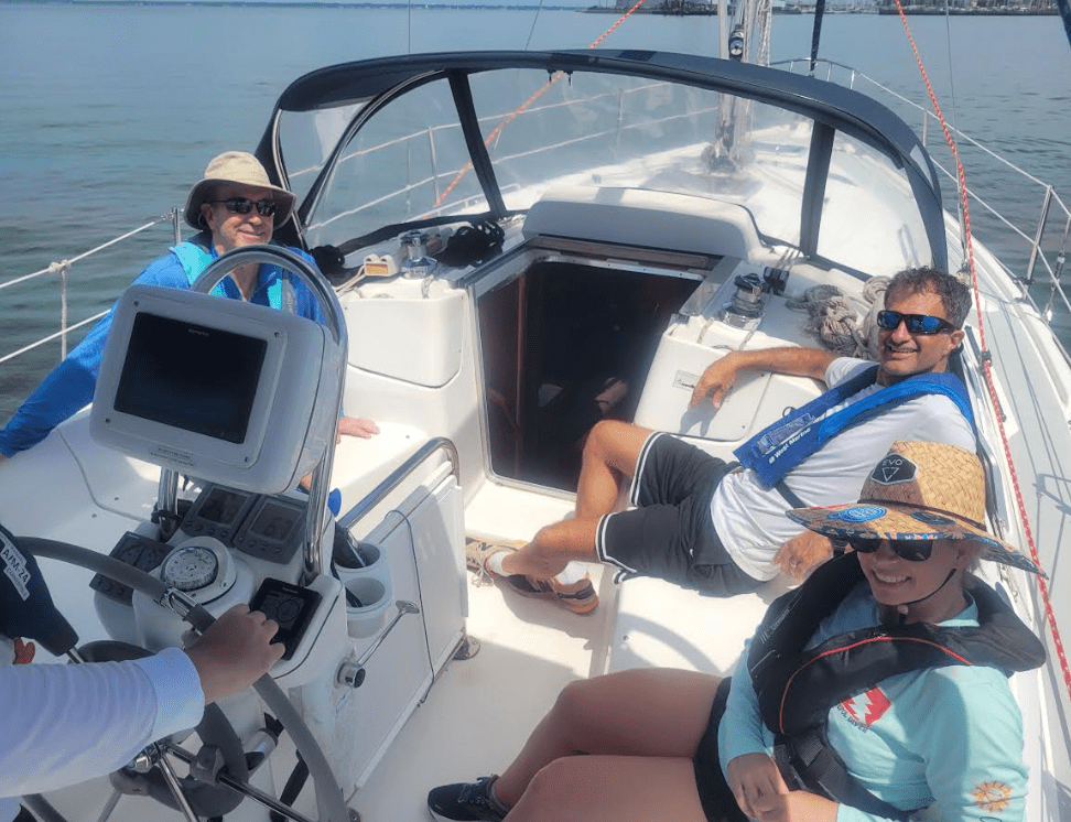 The following weekend I taught an ASA103 class including a couple of students that had taken ASA101 with me. You get to know people pretty quickly while sailing and it’s nice to see people again as they come back to take more classes. There wasn’t much wind the first day so we did a lot of docking practice, but we got some good sailing in the second day. Everyone had a good attitude despite the heat and humidity that weekend.