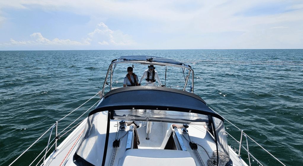 In late June, I crewed on Albatross, a Solaris One 42 in Queen’s Cup from Milwaukee across Lake Michigan to Muskegon. This opportunity came up through an introduction through a colleague at work and I’m thankful for the opportunity. The race starts in different groups with the slowest boats first and the fastest boats last. We started at 5:30pm. We had beautiful weather with comfortable temps (just needed to add layers overnight), winds of 12-15 knots on the beam out of the north, and averaged close to 8 knots sailing on the main and the asymmetrical spinnaker on the same tack the entire way. The race was a distance of roughly 70 NM and we finished about 9 hours later. We got to pass a lot of the smaller boats that started earlier and towards the end, you could look back and see the navigation lights of so many boats. There were over a hundred boats in the race. The last boats to start were long fast boats with large crews. The fastest boats raced with a big square top main, two staysails to funnel wind around the mainsail, and a huge asymmetrical spinnaker. It was cool to watch them pass by the rest of the fleet. You can see photos of many of the boats at this link. At the finish in Muskegan there was a party at the yacht club. We got a nap in after celebrating for a bit and then sailed back to Chicago, arriving around 2:30AM the following morning.